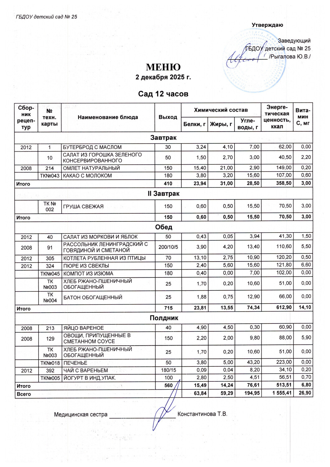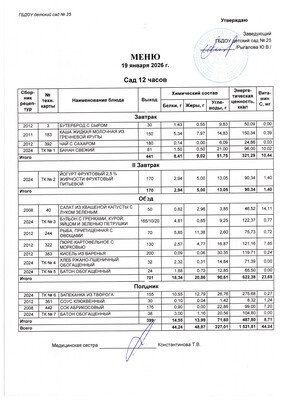 Индивидуальные меню для детей, нуждающихся в лечебном и диетическом питании не предусмотрено.