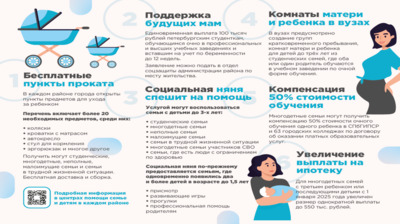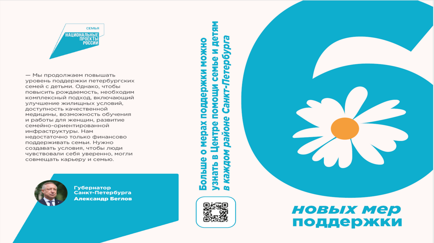 В Санкт-Петербурге введены новые меры социальной поддержки семей в связи с рождением и воспитанием детей, определенные национальным проектом «Семья» и региональными проектами Санкт-Петербурга «Поддержка семьи» и «Многодетная семья».